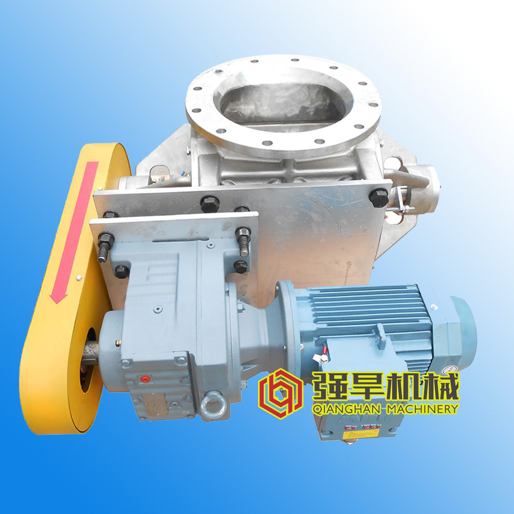 旋轉給料閥又稱旋轉給料器,是應用于粉體(粉沫、顆粒物料、粉粒混合物)輸送系統中用來卸料、計量、除塵、定量輸送、混合、包裝的專用設備.它主要由主閥,減速機構,防護裝置等三大部分構成。主閥又由殼體,端蓋,葉輪,軸承,油封,集氣管等構成。精心的結構設計,使得旋轉給料閥具有很好的鎖氣,耐高溫高壓,防卡料等特殊功能。既可單獨用于化工,環保,石油,治金,耐火材料,電力,水泥,塑料,糧食醫藥等行業的粉體輸送,也可配置混合加速室與三通換向閥,插板閥配套應用于氣力輸送系統,除塵系統等。