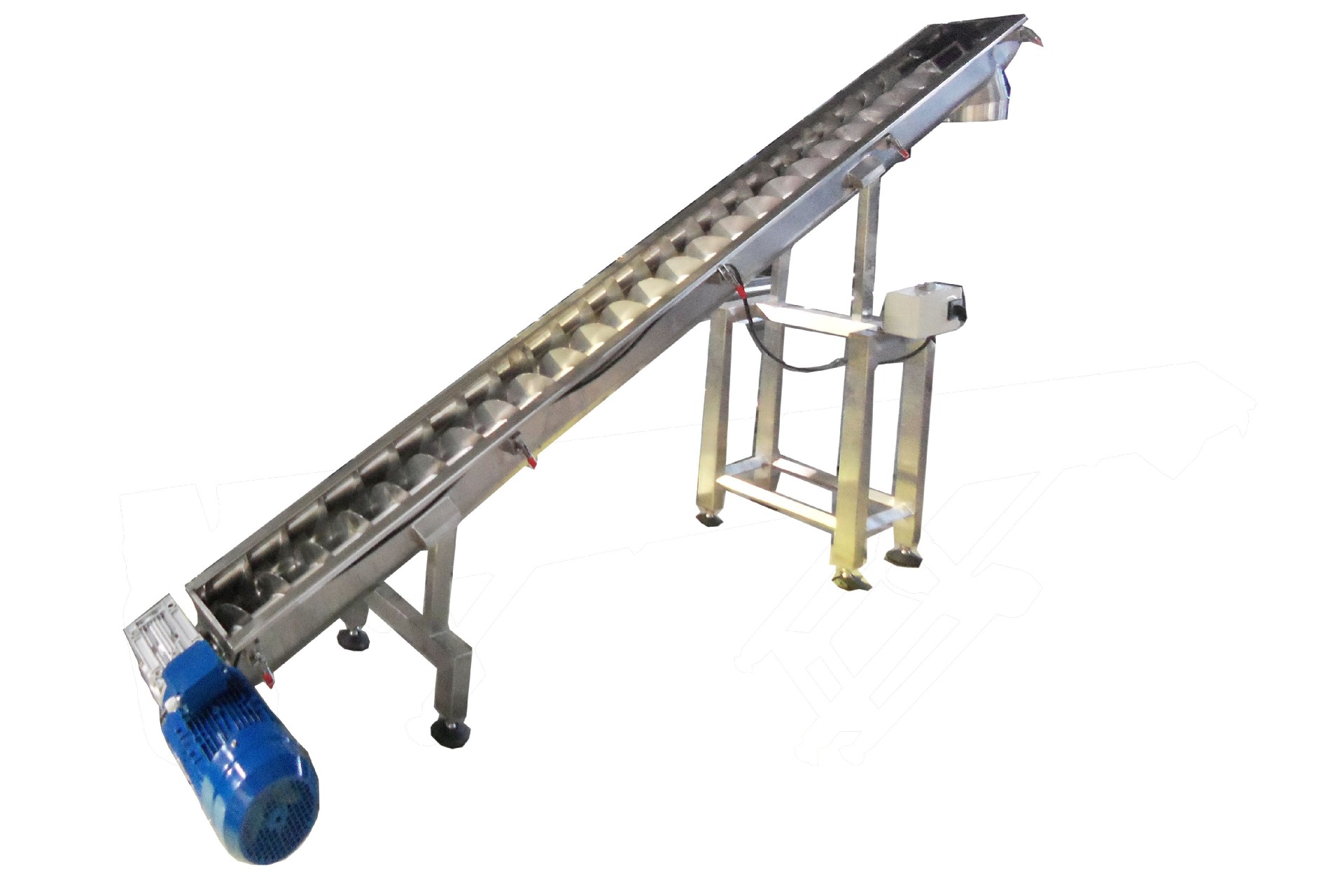 上料管為U型槽,槽上有不銹鋼圓弧蓋,用卡扣扣緊,中間用密封條密封,不漏粉,打開蓋子便可方便清洗。